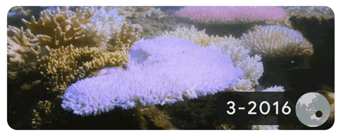 구글 로고 자리에 올려진 <호주 대보초(그레이트 배리어 리프) 리저드섬의 한 산호가 백화 현상을 겪는 이미지>